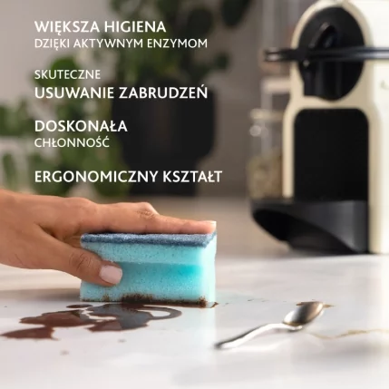 Pięciokrotnie wyższa chłonność pianki hydrofilowej sprawia, że zmywak szybko pochłania rozlane płyny – idealny do ekspresowego sprzątania.